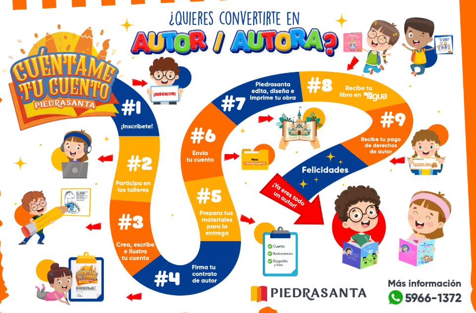 Los participantes tienen la oportunidad de experimentar todo el proceso editorial: desde la firma del contrato de autor, la edición, revisión, diseño e impresión del manuscrito, hasta la entrega, exposición y venta de su obra en FILGUA, la Feria Internacional del Libro en Guatemala. También experimentan recibir el pago de los derechos de autor por la venta que alcance su obra.